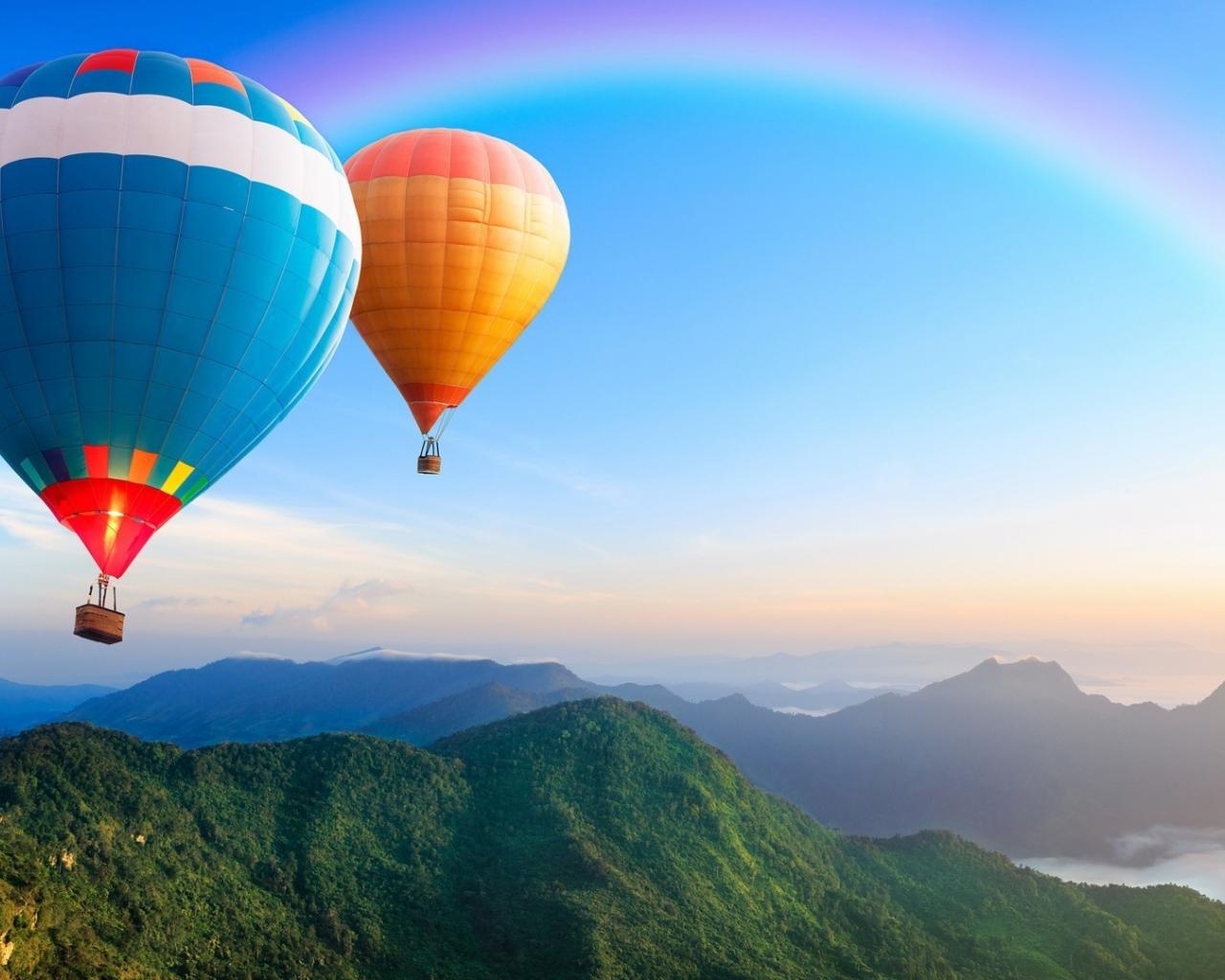 Wallpaper Two balloons over the mountains