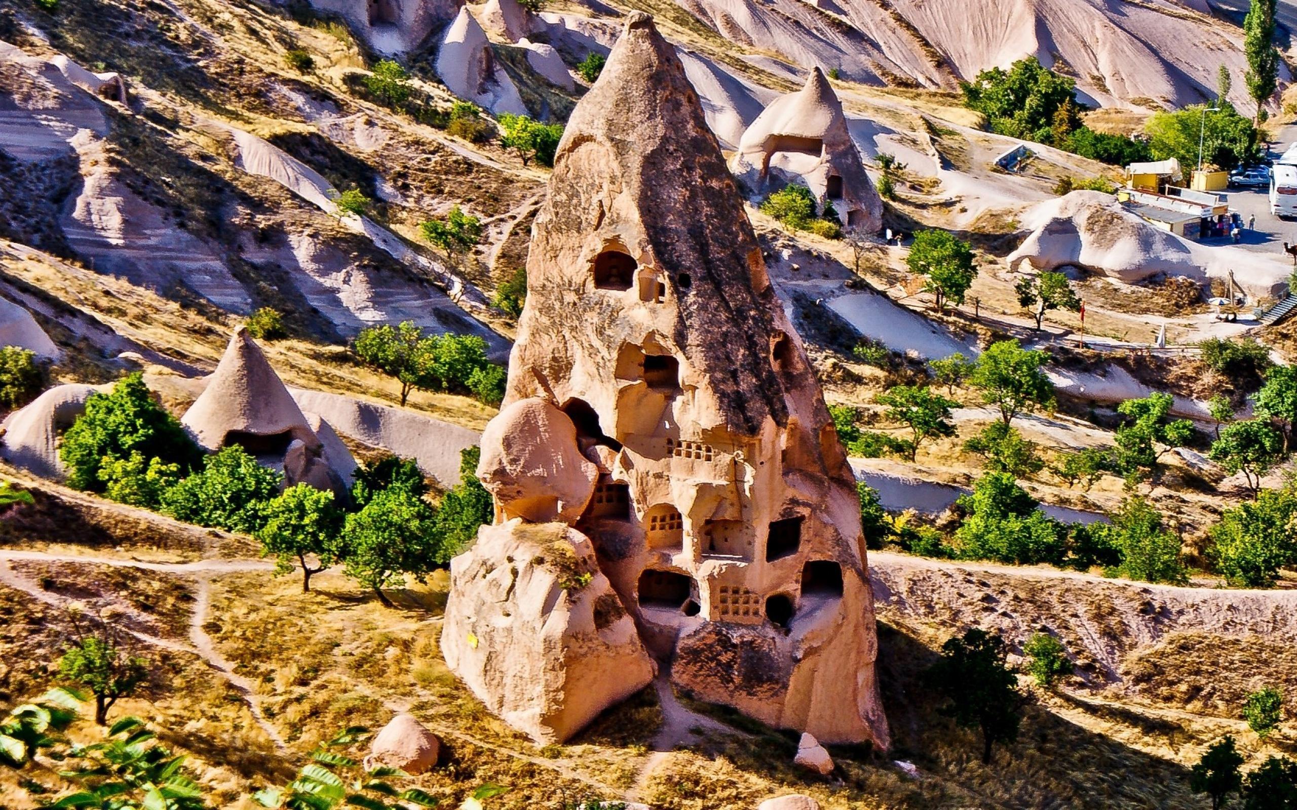 Wallpaper Houses in a cone-shaped rock