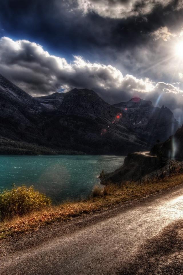 Wallpaper The road along the river in the mountains