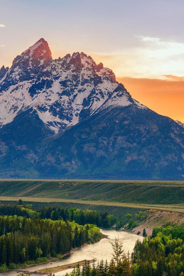 Wallpaper Orange clouds behind the mountains