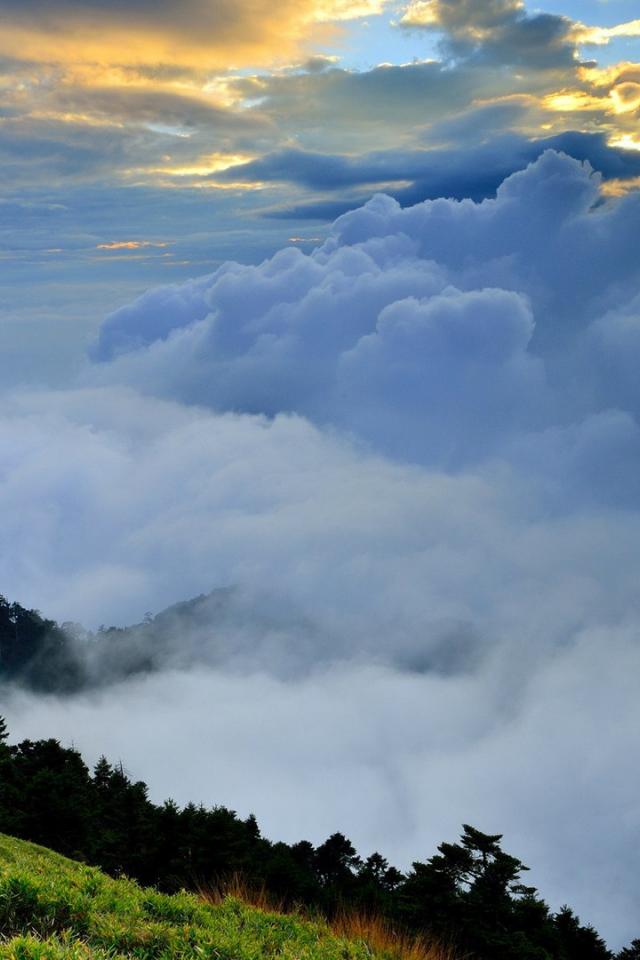 Wallpaper Mountain valley obscured by clouds