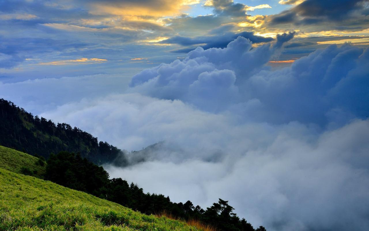 Wallpaper Mountain valley obscured by clouds