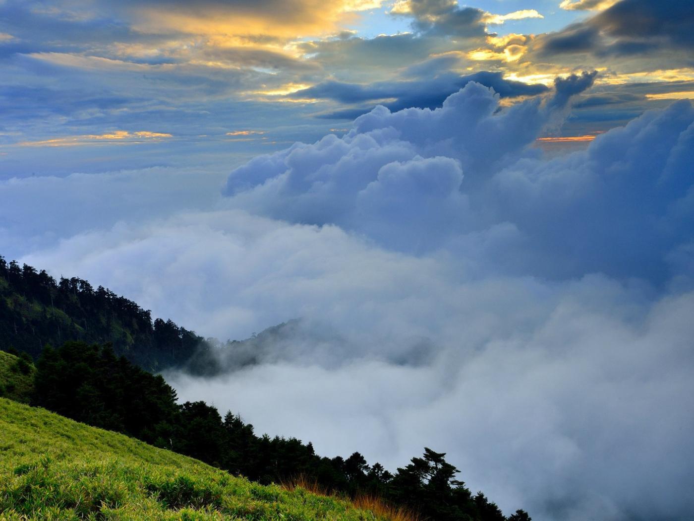 Wallpaper Mountain valley obscured by clouds