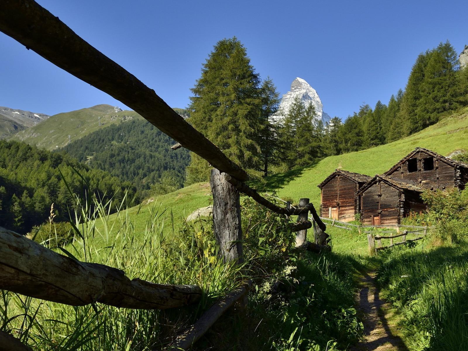 Wallpaper The fence and the old house in the mountains