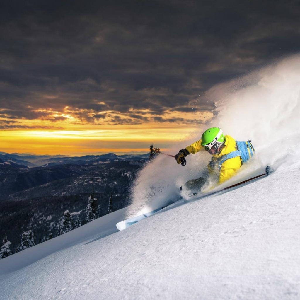 Wallpaper The descent from the slope of the mountain at sunset