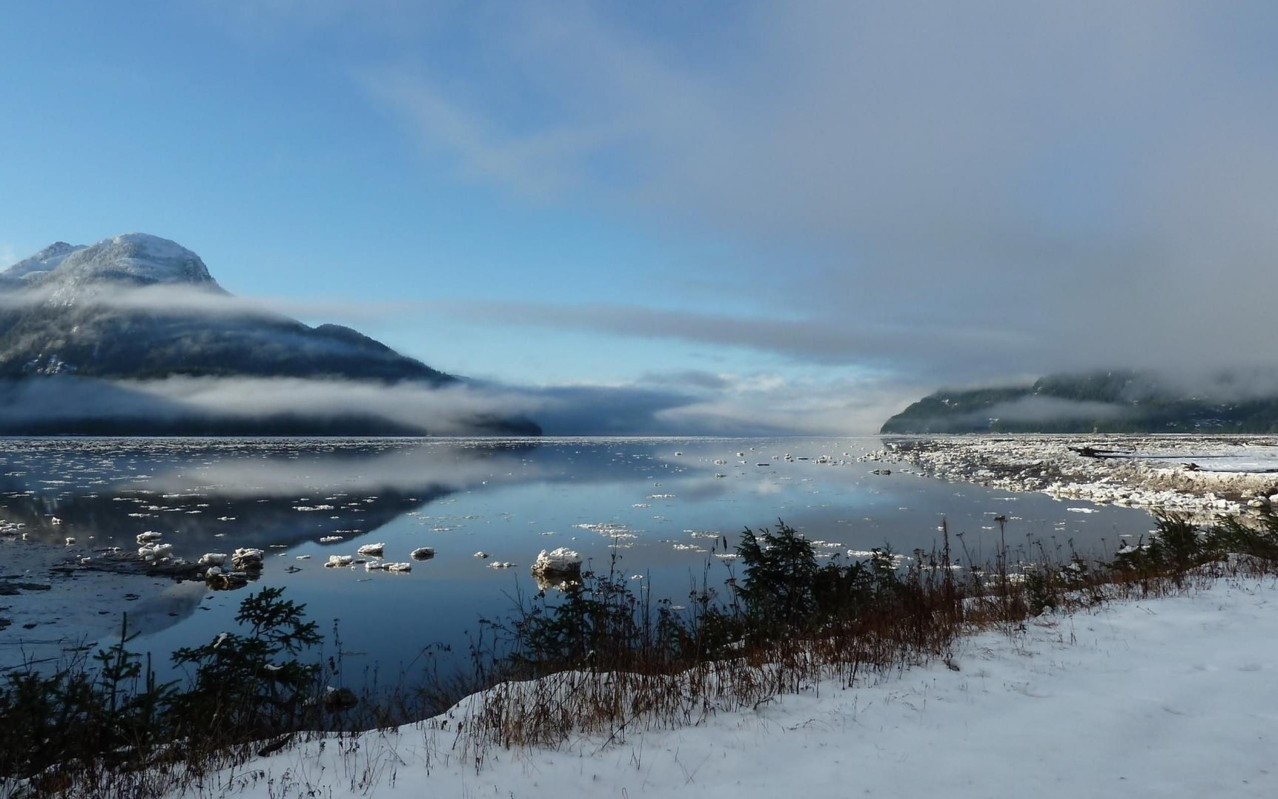 Wallpaper Foggy winter lake in the mountains