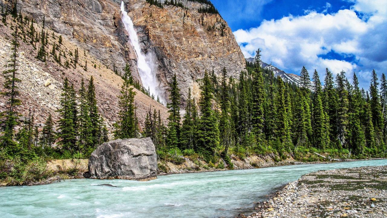 Wallpaper Mountain and waterfall