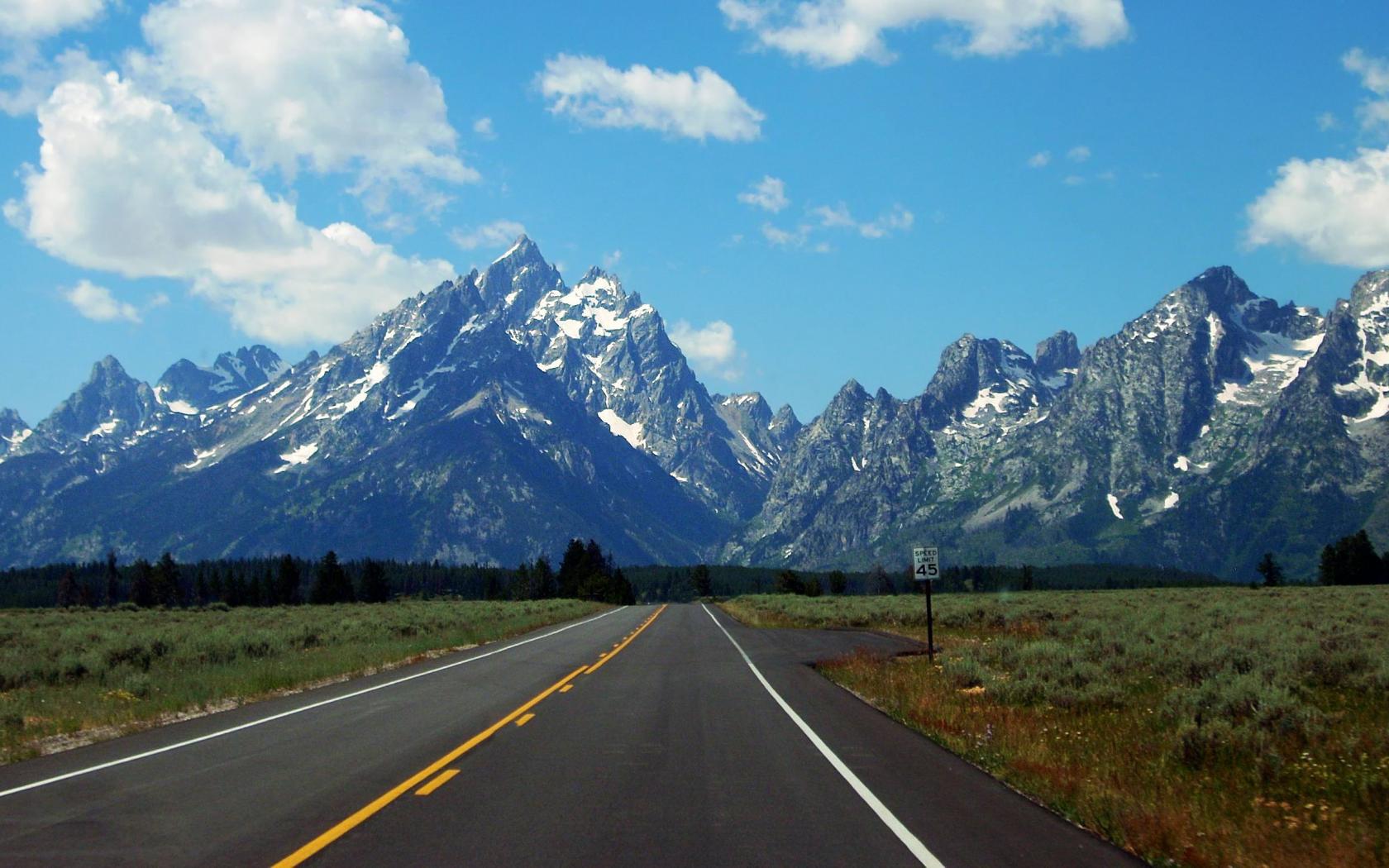Wallpaper The road to the snowy mountains