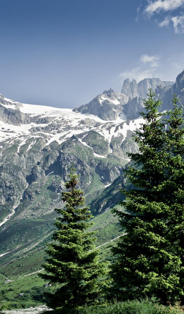 Wallpaper Snowy mountains and trees