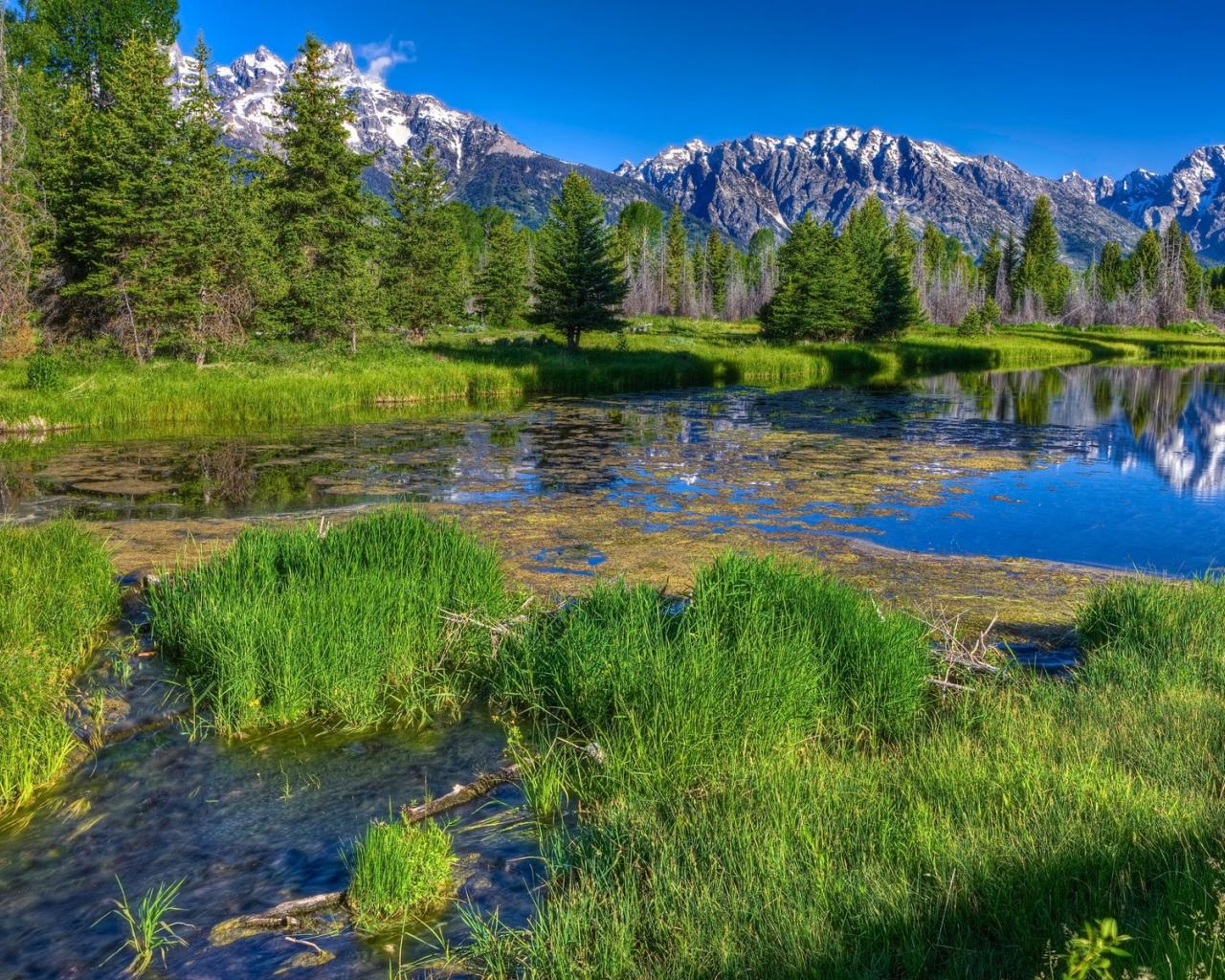 Wallpaper Overgrown river in the mountains