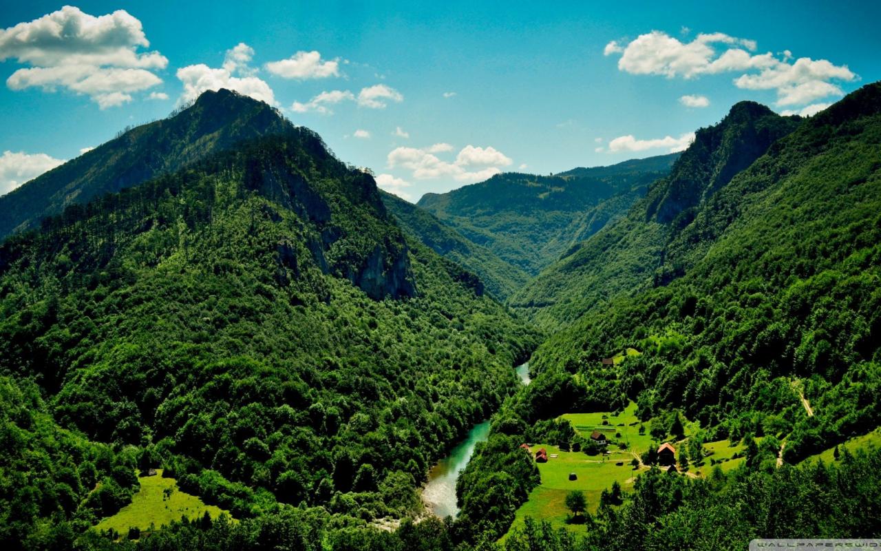Wallpaper Green mountains and the river