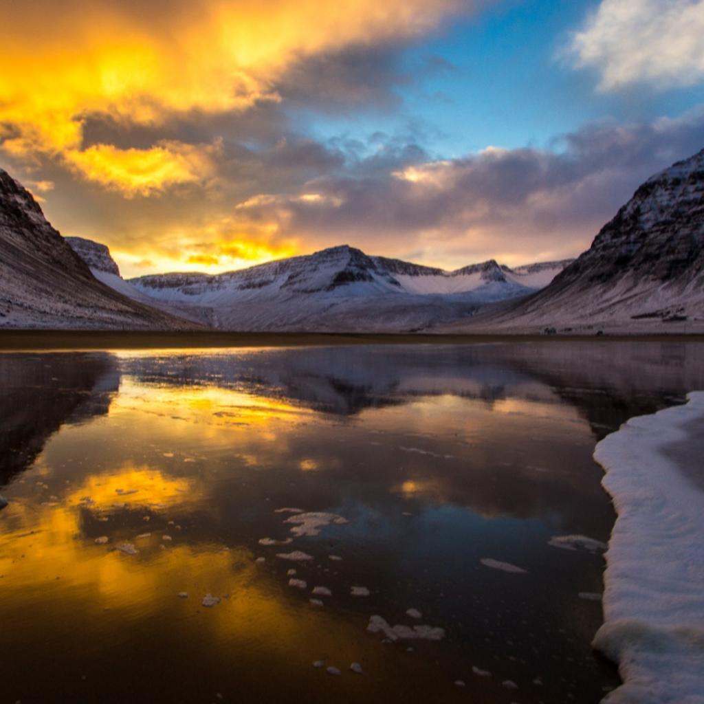 Wallpaper Sunset over mountain lake