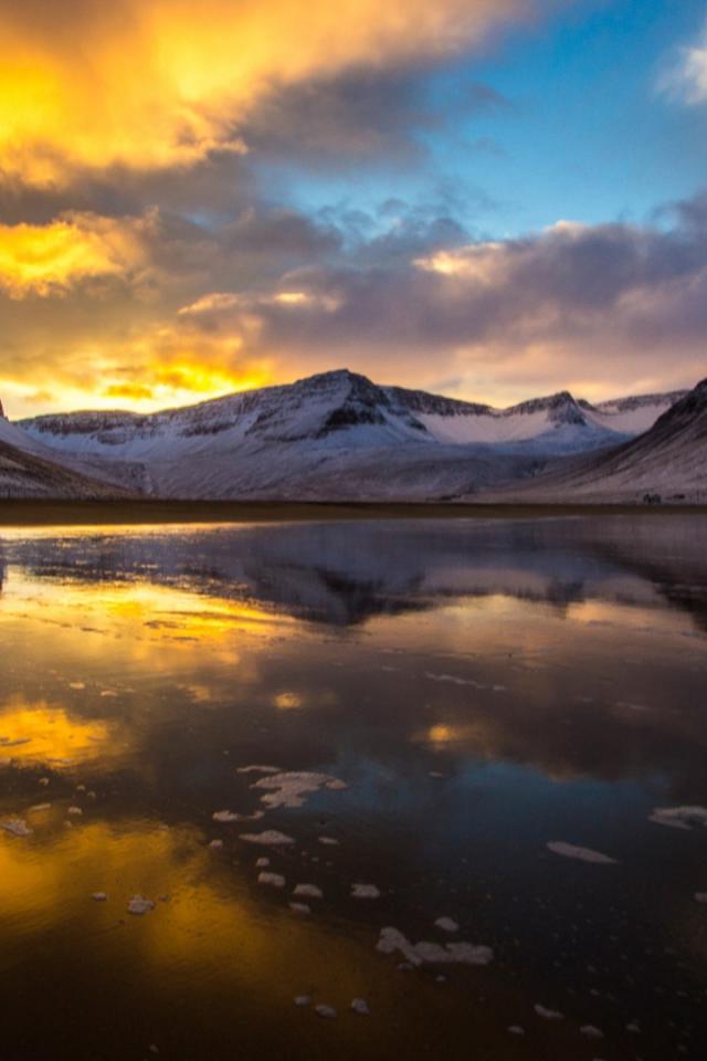 Wallpaper Sunset over mountain lake