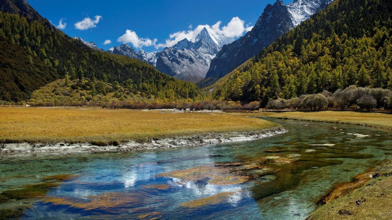 Wallpaper The river flows through the valley
