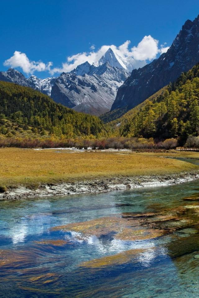 Wallpaper The river flows through the valley
