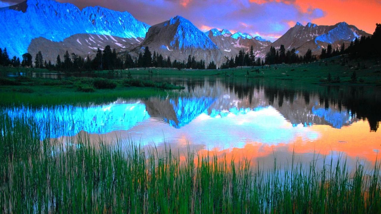 Wallpaper Blue mountains illuminated by the sun