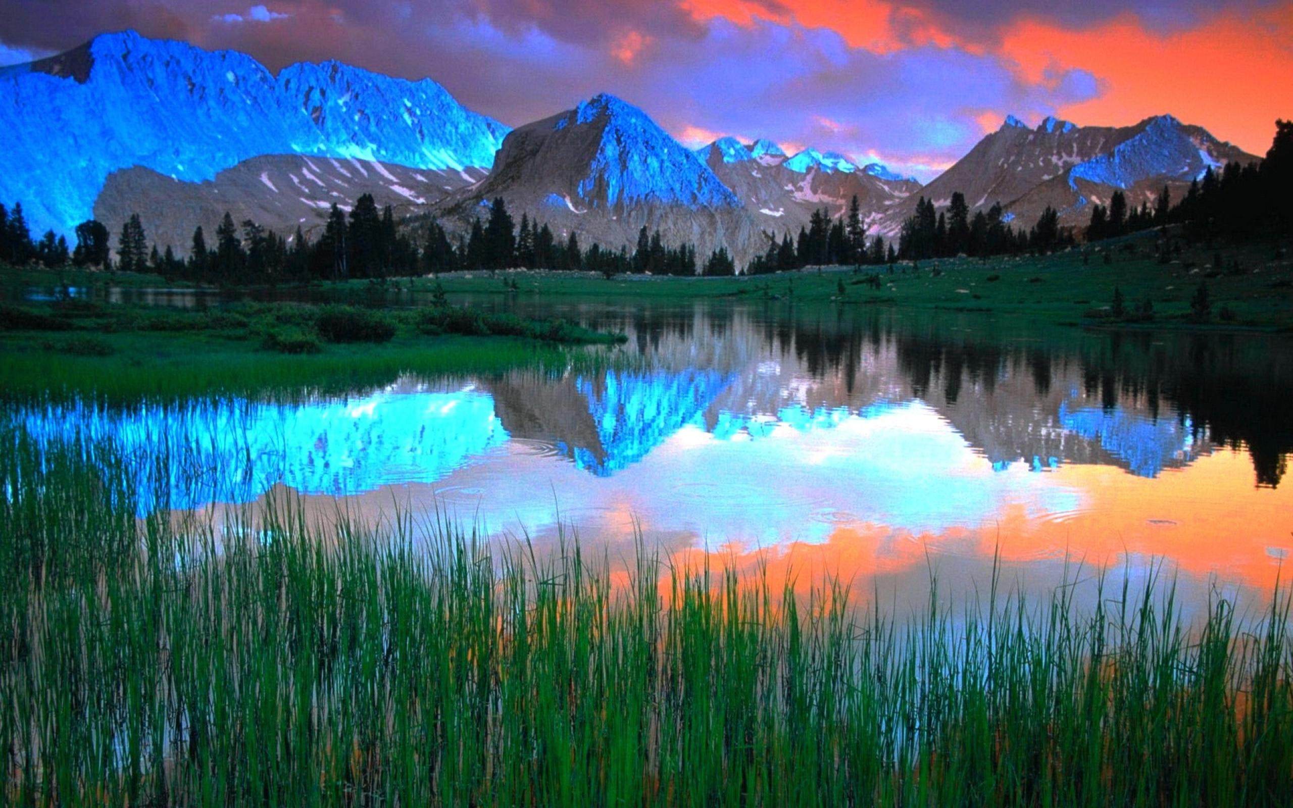 Wallpaper Blue mountains illuminated by the sun