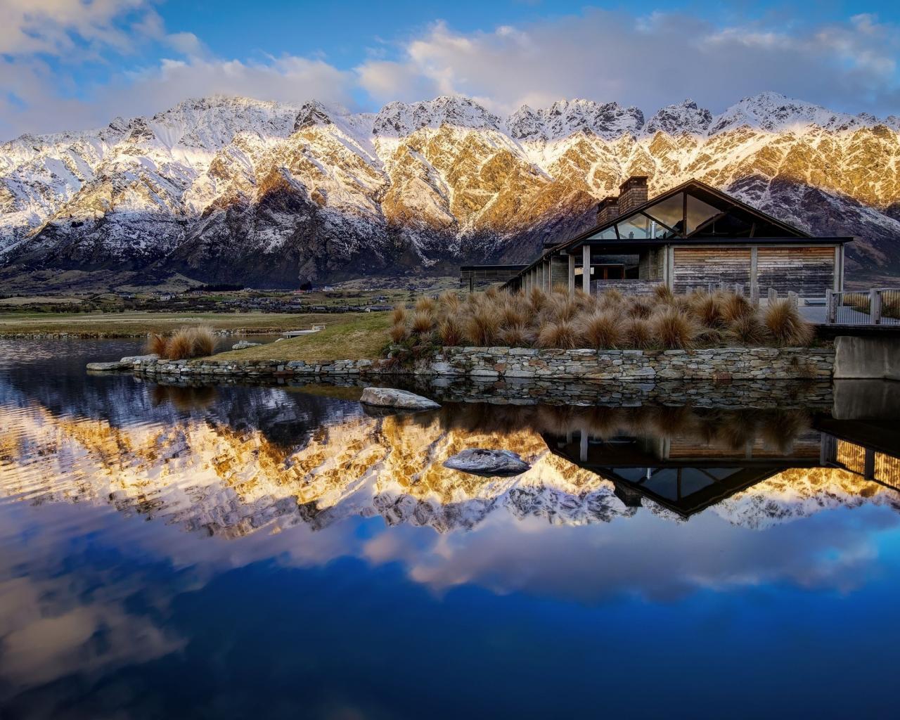 Wallpaper House near the mountain lake