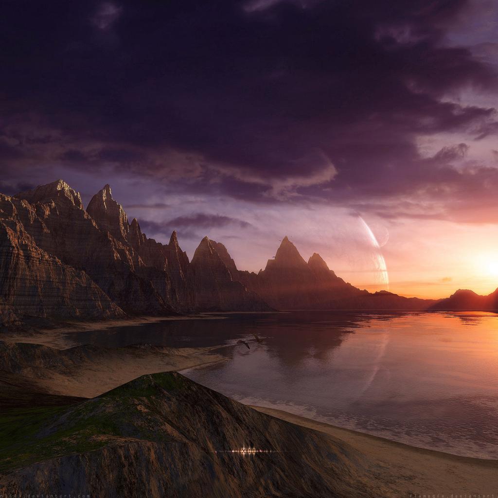 Wallpaper Mountain landscape and water