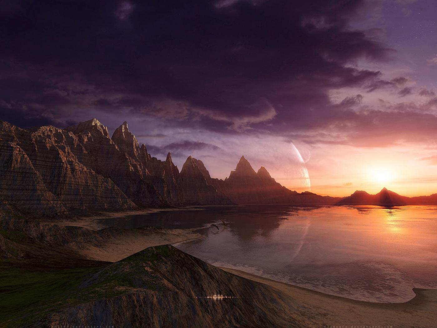 Wallpaper Mountain landscape and water