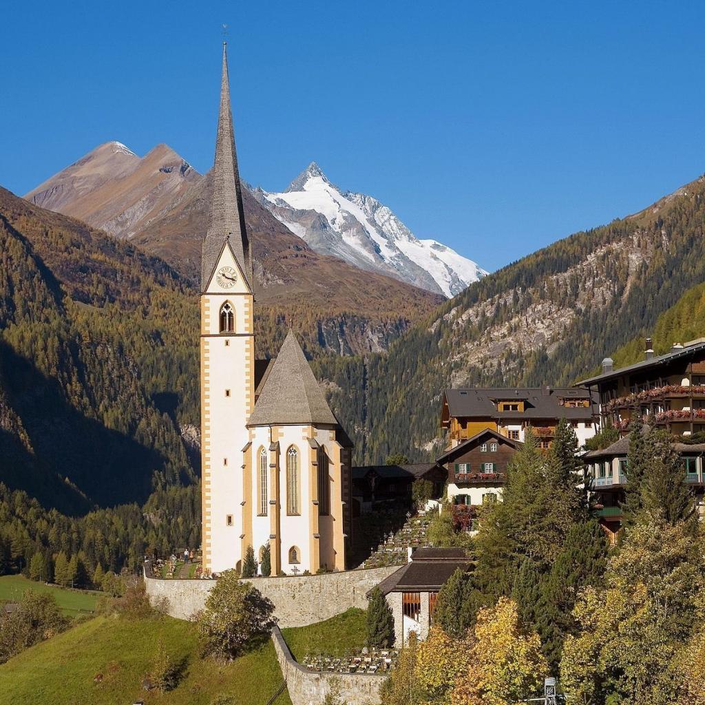 Wallpaper The white chapel in the mountains