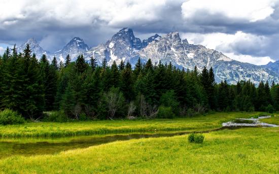 Wallpaper Green trees on a background of mountains