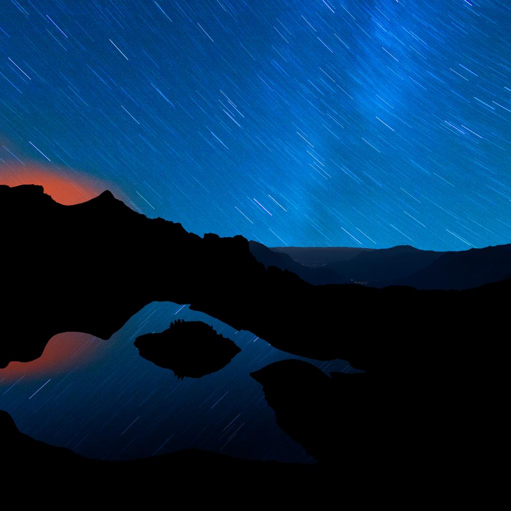 Wallpaper Starry night sky and mountains