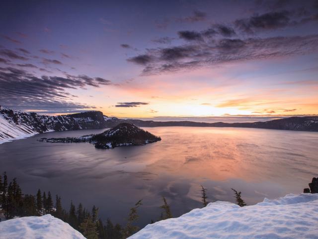 Wallpaper Mountain lake with an island