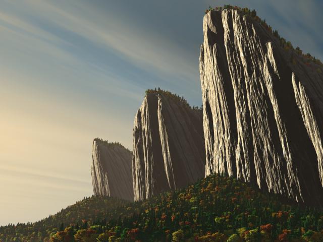 Wallpaper Bare rock near the shore on the background of purple sunset