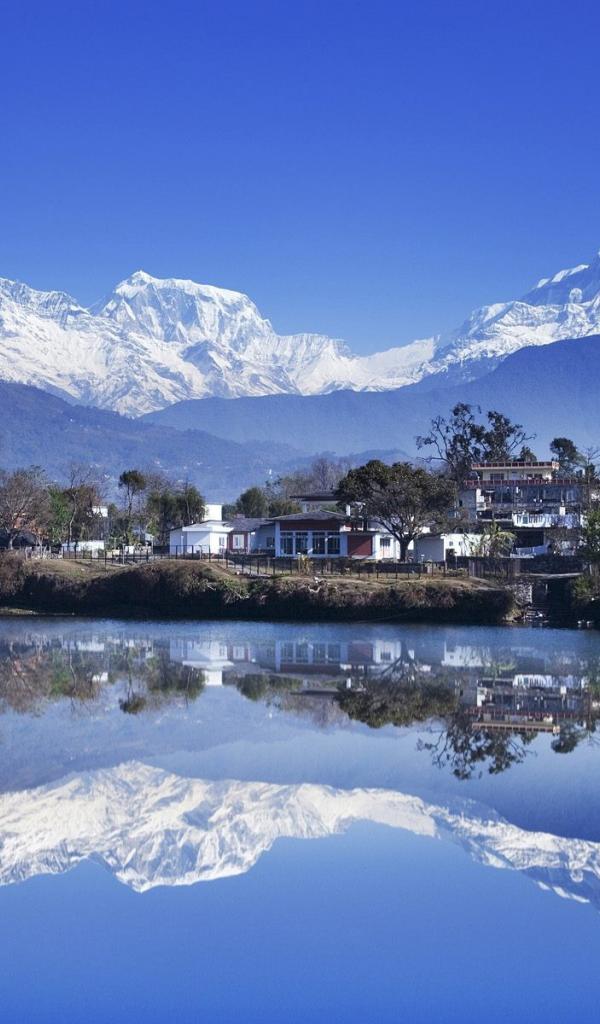 Wallpaper The reflection of the white mountains in the water