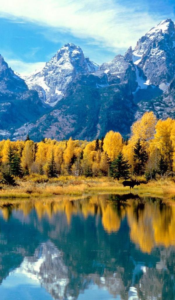 Wallpaper Autumn in the forest at the foot of the mountains