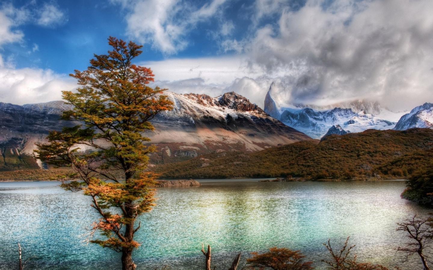 Wallpaper Mountain landscape with a tree