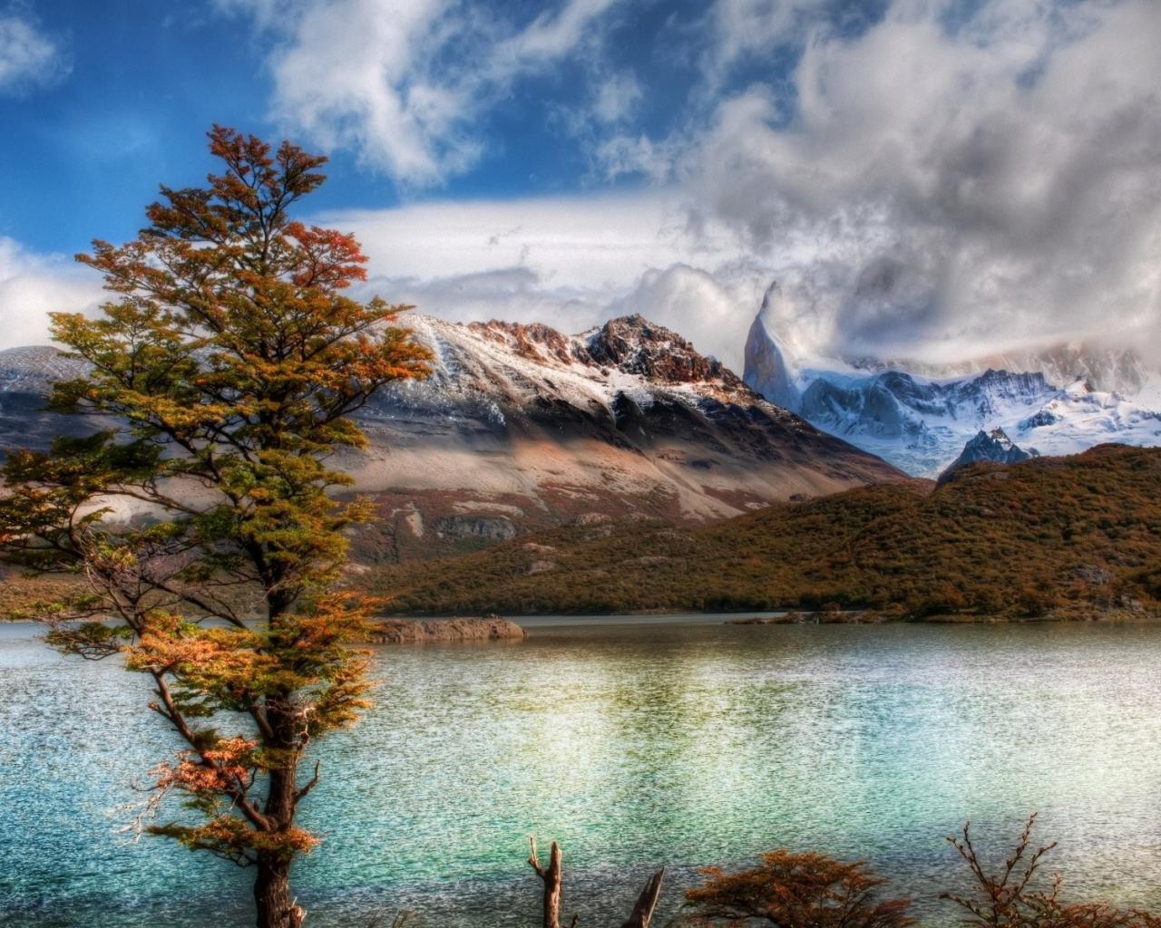 Wallpaper Mountain landscape with a tree