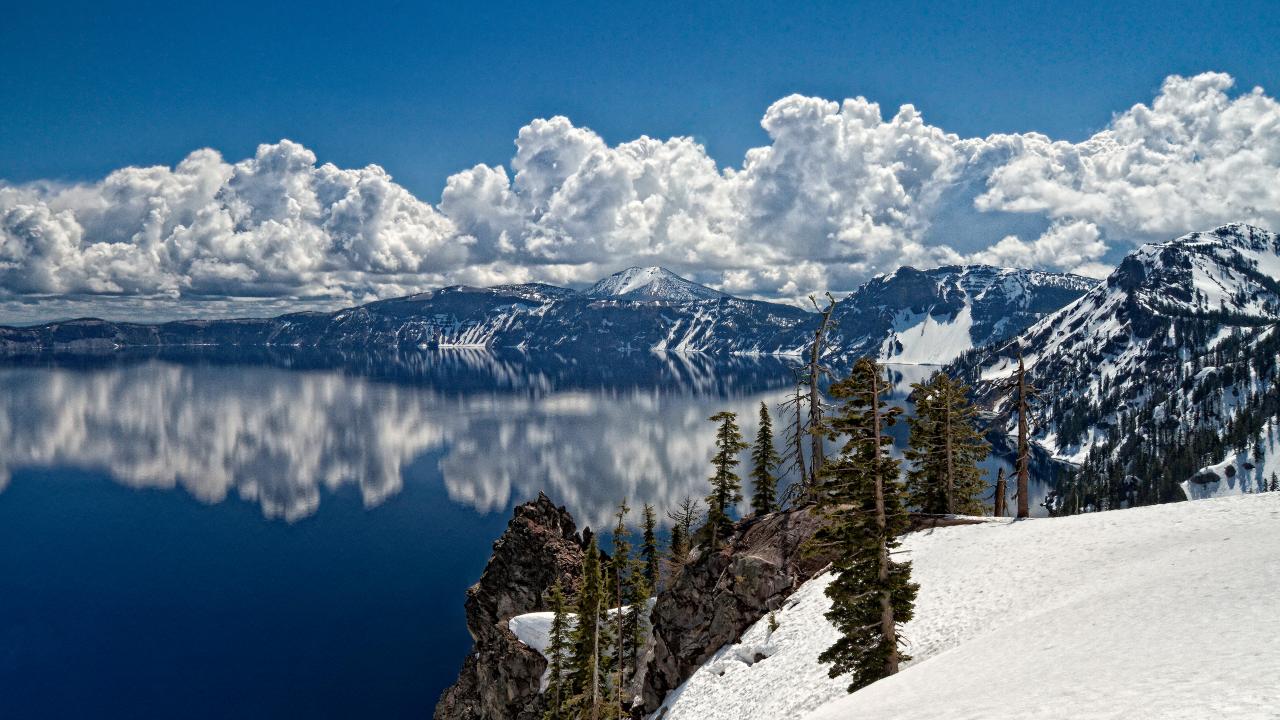 Wallpaper Snow, Trees, Snow-capped mountains, Mountain lake, Relax
