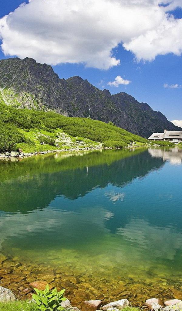Wallpaper Lake, Green grass, Summertime, Stones, Relax, July