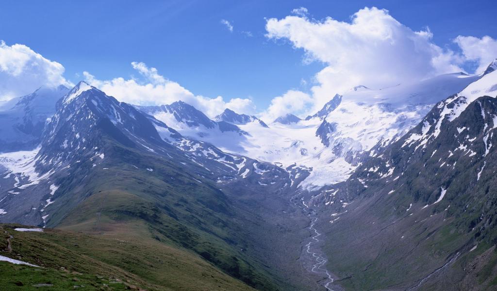 Wallpaper Snow-capped mountains, Creek