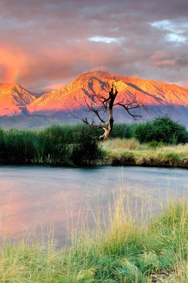 Wallpaper Mountains and river at sunset