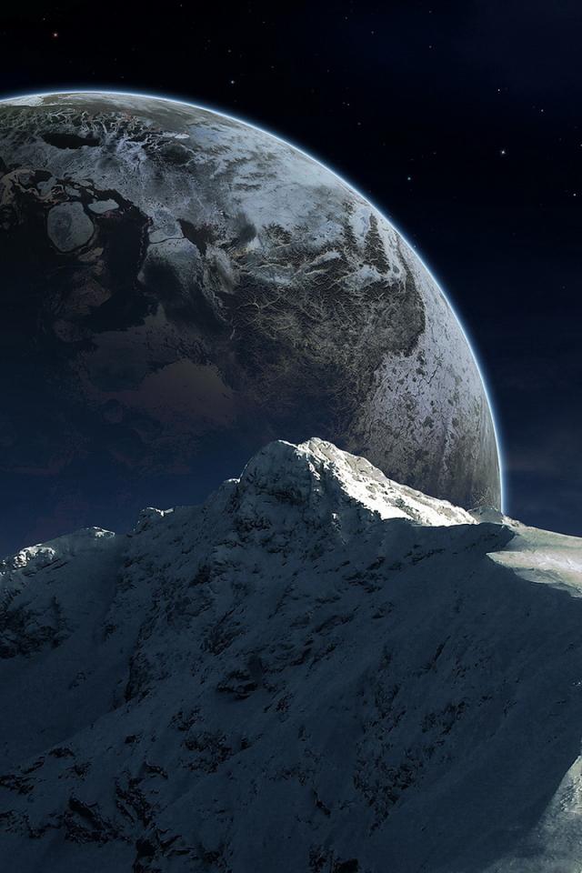 Wallpaper Mountain on the background of the planet