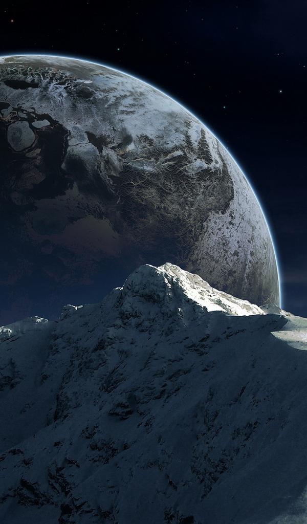 Wallpaper Mountain on the background of the planet
