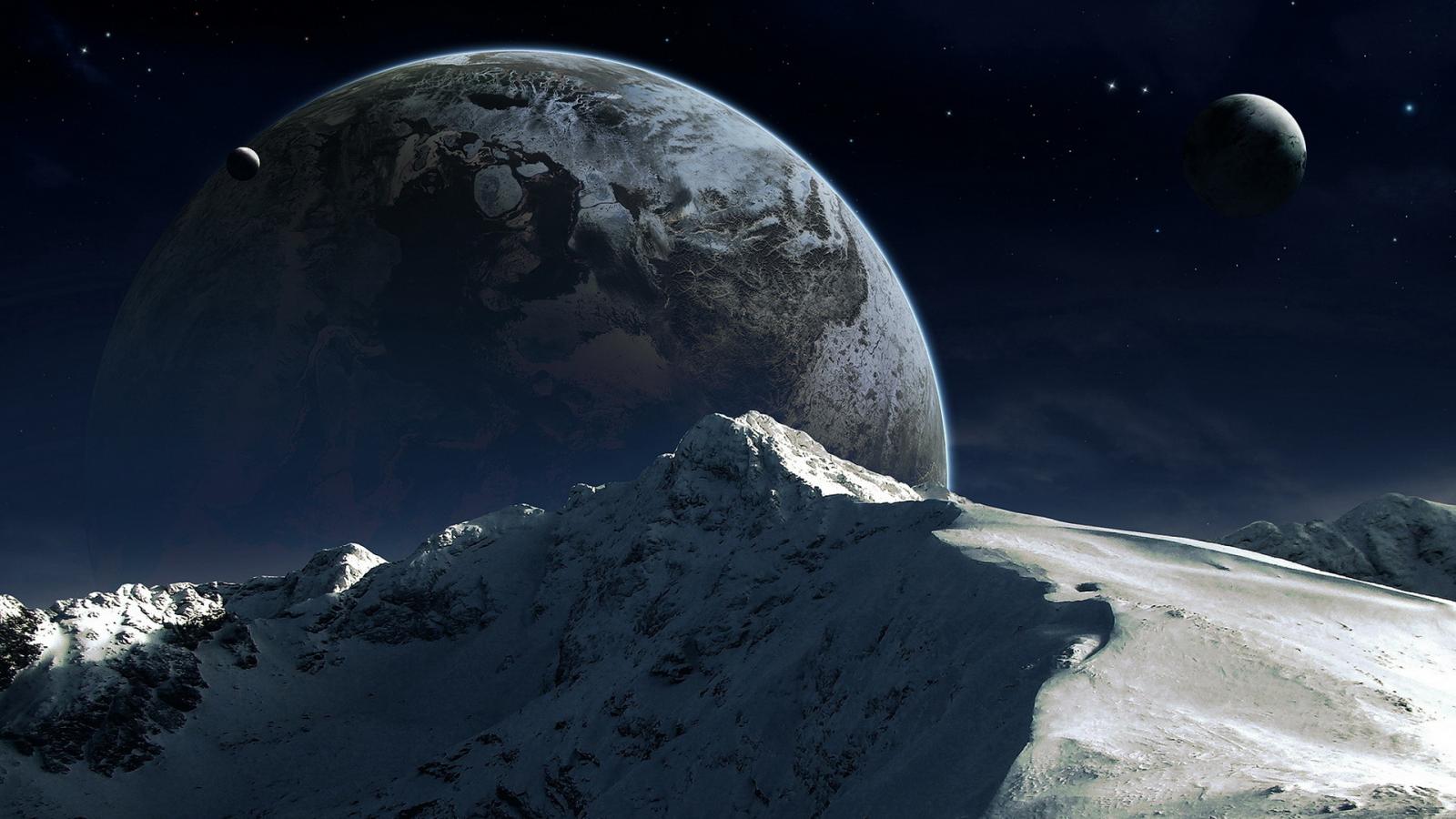 Wallpaper Mountain on the background of the planet