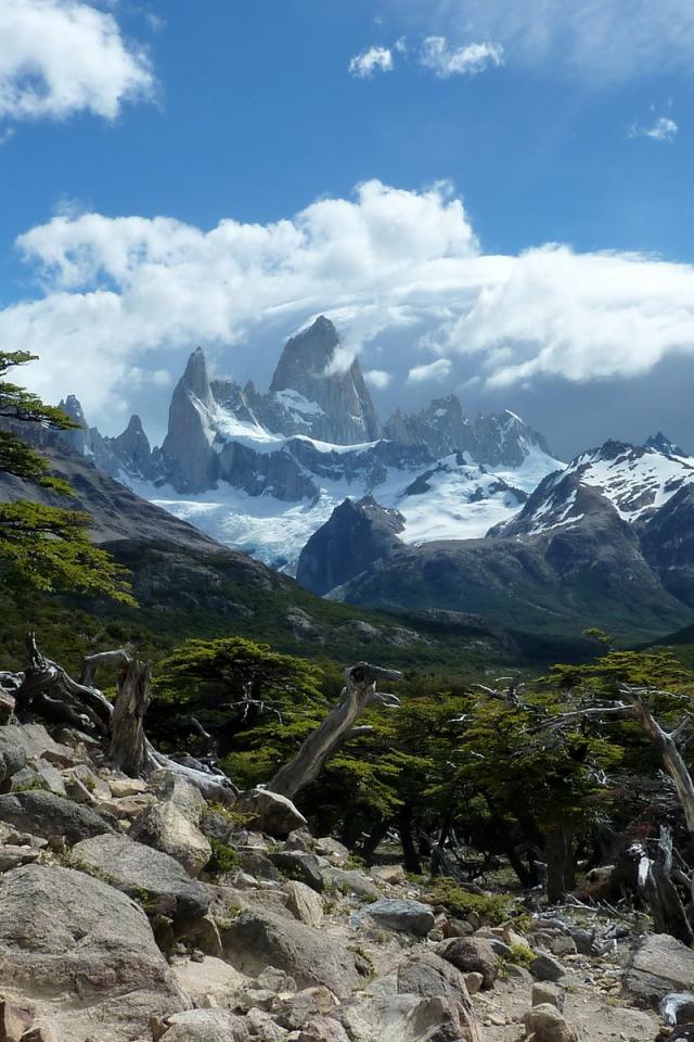 Wallpaper Snowy peaks in the clouds