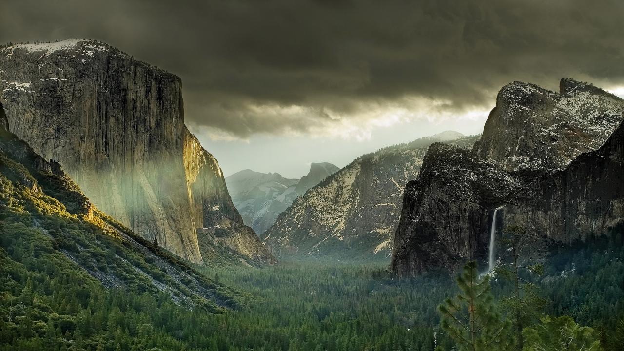 Wallpaper Forest at the foot of the mountains