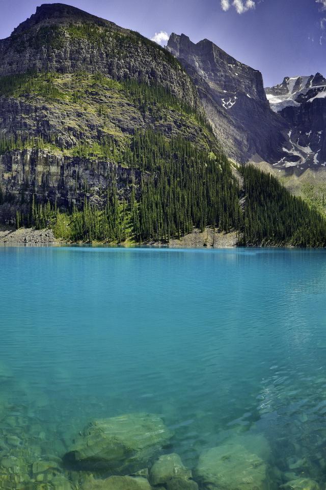 Wallpaper Clear lake at the foot of