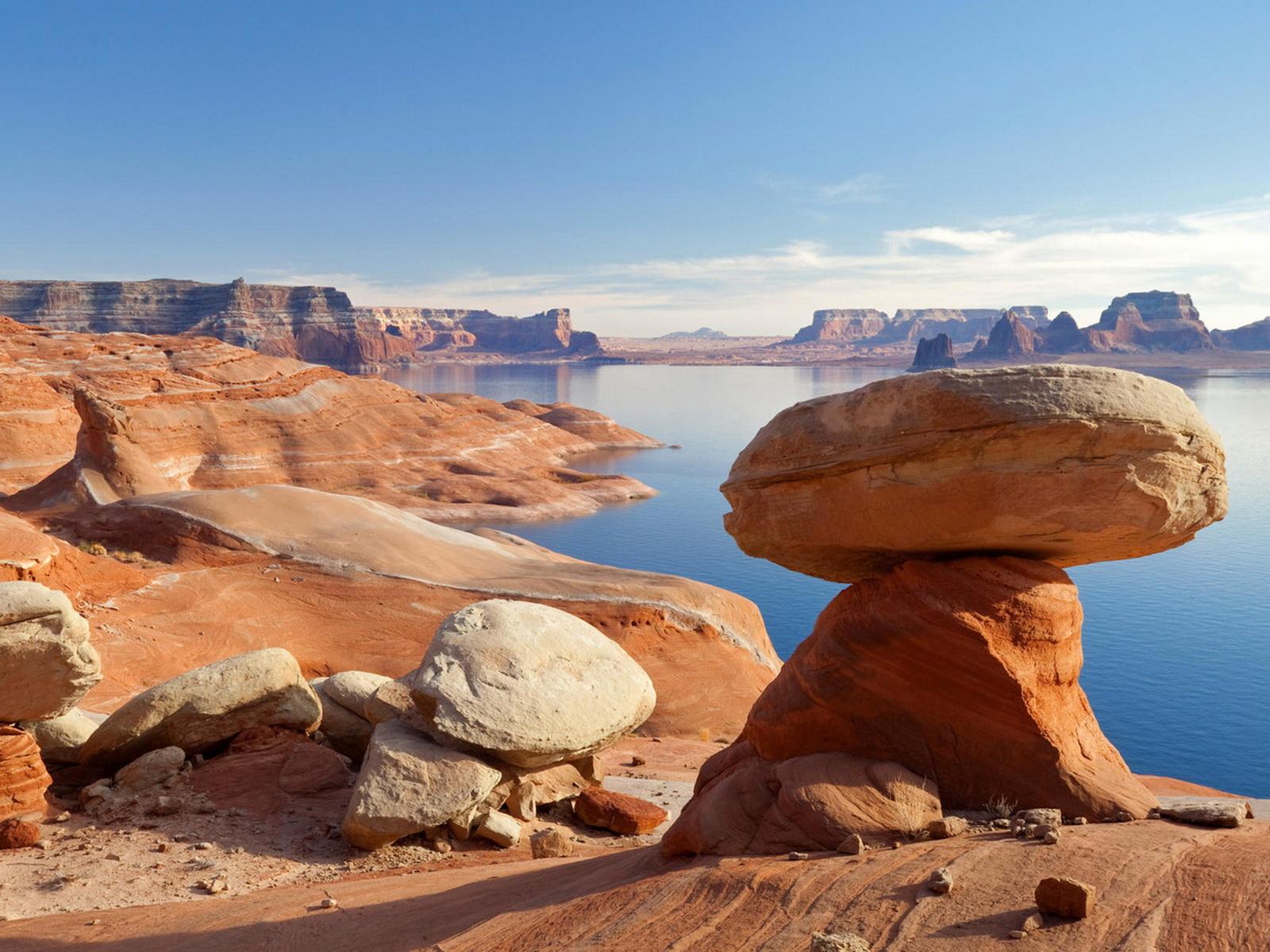 Wallpaper Road, Lake, Mountain lake, Low clouds, Relax