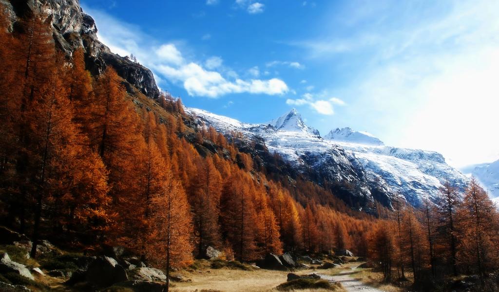» Wallpaper Red Forest in the mountains
