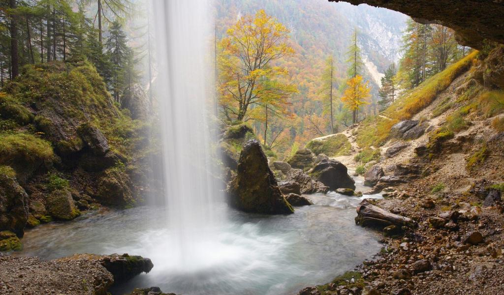 Wallpaper The view of the waterfall from the cave