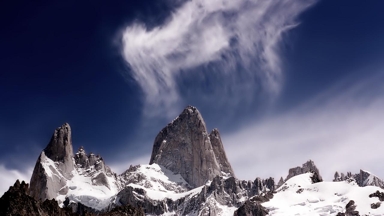 Wallpaper Tall rock and clouds