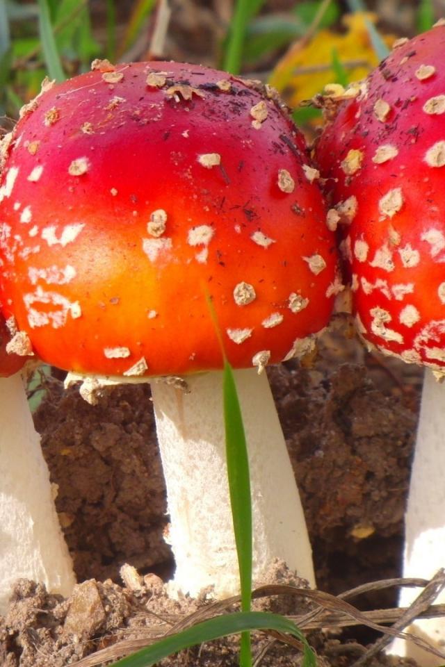 Wallpaper Three red mushroom in the forest
