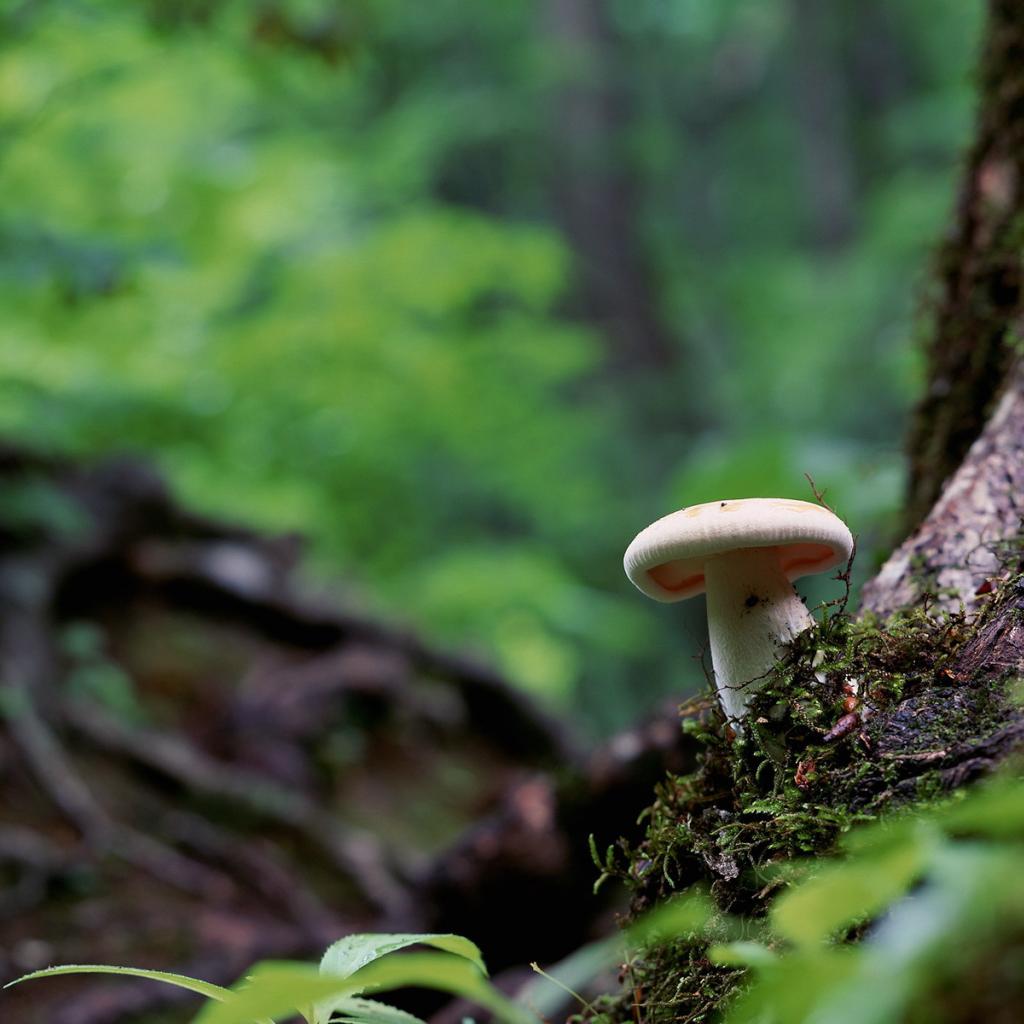 Wallpaper White fungus on the roots of a tree