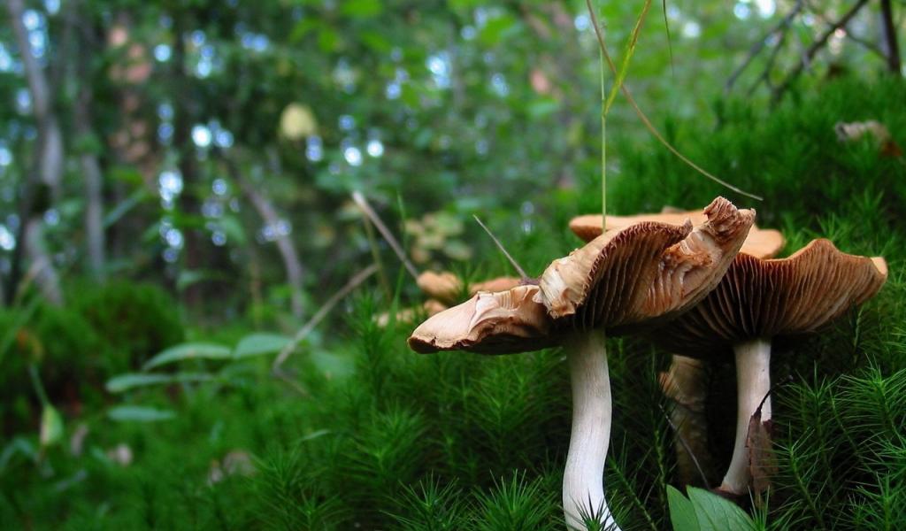 Wallpaper Mushrooms among a moss